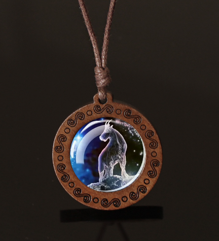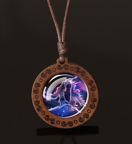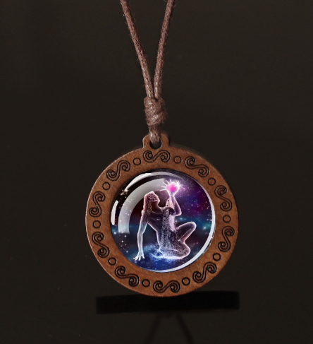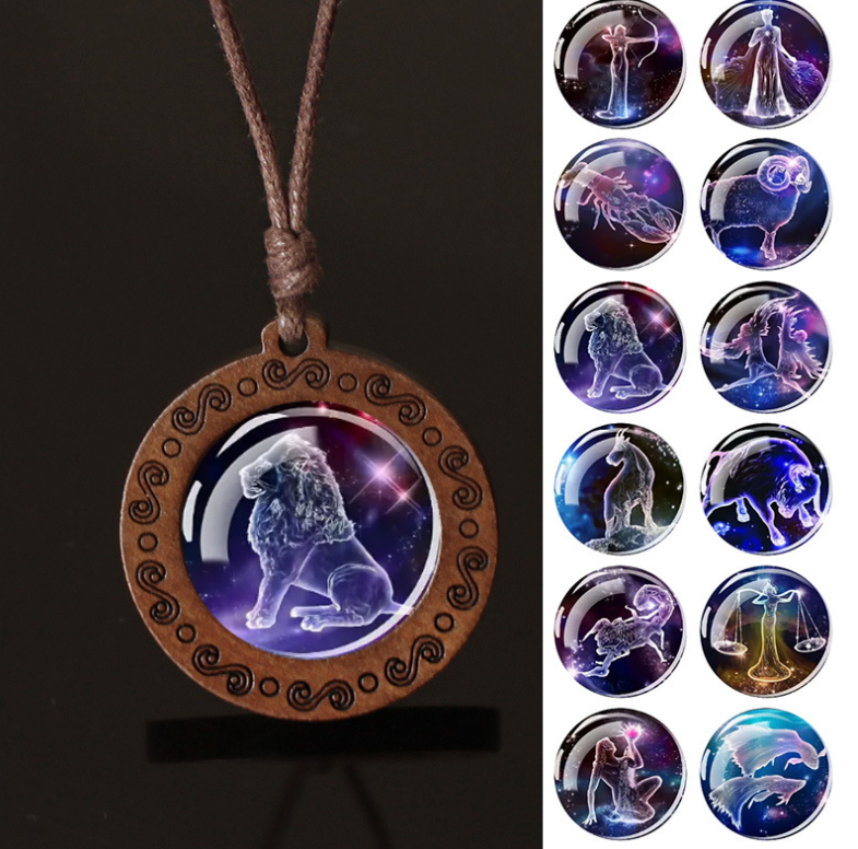 Express your cosmic identity with this luminous zodiac necklace — crafted from wood, glass & wax cord. ♎ Your sign glows in the dark for a magical effect. Lightweight, mystical & a true conversation starter. One sign, one story.