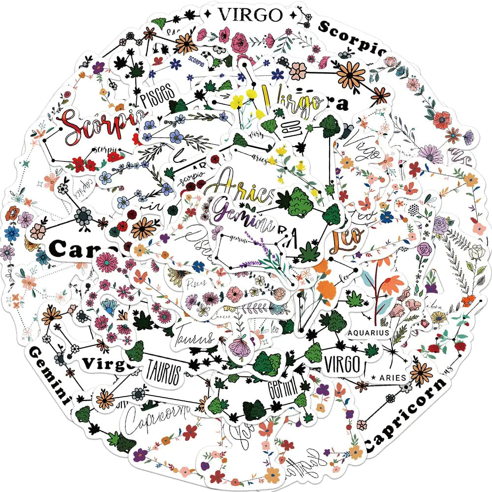 Zodiac Floral Stickers – 100pcs Waterproof Vinyl Set ✨